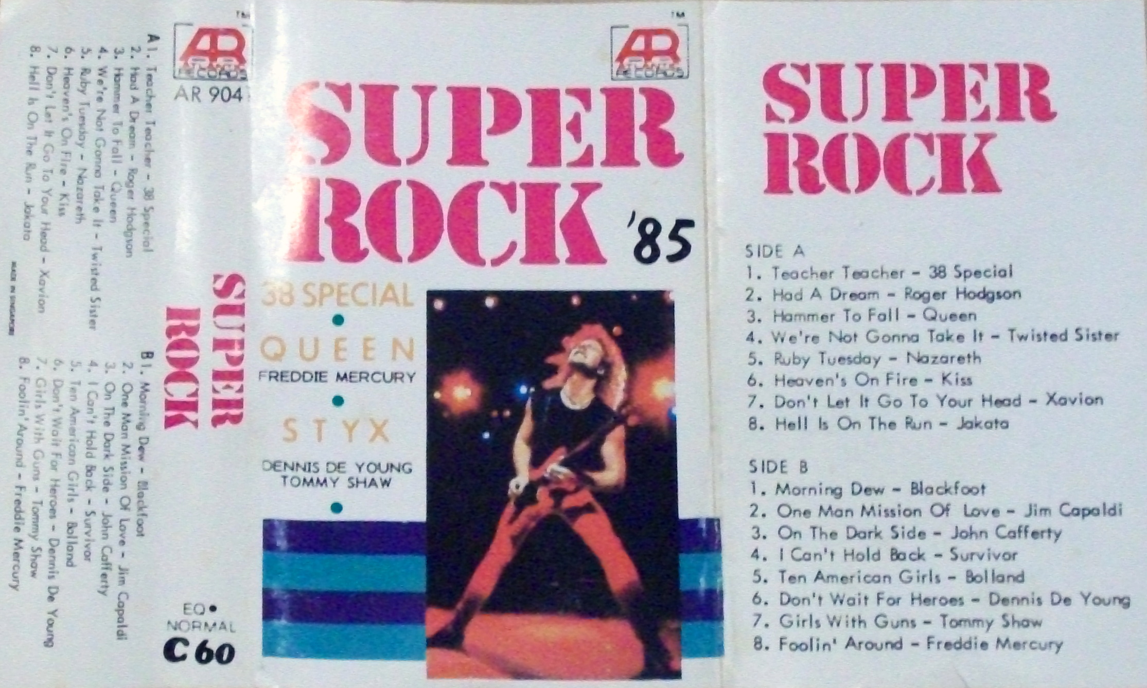 that as it may, I had learned how to use my parents’ huge cassette deckĀ – they still have it, but I have successfully managed to break it in the meanwhile – so I decided to play that tape. On max volume. (I’ve always had a “thing” for blasting my music out loud – it just doesn’t feel the same if the volume’s turned low.) I loved it. From the very first, I absolutely loved it and that cassette tape became my favourite – and it stayed like that for many years. The songs were all in English – it didn’t matter that I couldn’t understand the language at the time, to me it was as though I were listening to magical chants. My theory is that my early love for the songs on that tape tipped the balance and gently helped me become who I am today, because most of the songs on it stayed with me even though I wasn’t aware of it. The cassette had the cheesiest title ever – Super Rock ’85 (produced by Atlantic Records and “made in Singapore”) – and it was a compilation of allegedly some of the best rock songs of said year. Who decided which songs to include and based on what criteria is completely beyond me. Anyway the choice of songs and bands now seems pretty limited and perhaps not as brilliant as it could have been… The track list was as follows: