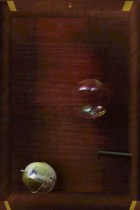 The game features a small wooden box, populated with three random objects. Some of the objects you might chance upon at any given time include: a feather, a die, a nail, a bird skull, a stick, a tiny (literally) bound tome, a soap bubble, a ripe cherry, an acorn, a ladybird (which will fly around sedately for a while and then drop dead), a snail, an egg, a key. In short, it is reminiscent of a child’s secret “treasure box”, where you might find anything, from a decayed milk tooth to a fragile insectile corpse (I should know, I used to a have a mighty collection of random stuff). You may interact with these object, but they will never affect one another and it is only seldom that your interaction with them will produce a visible change. Sometimes, you may get melancholy background sounds, which are mildly startling when they do happen. The game instructions encourage you to “Pause for a moment. Reflect.” Or sometimes, if you should happen to find “three identical objects” in the box and as a consequence you are awarded “a gold star on the lid of the box“, you are encouraged to “consider how lucky you are“.