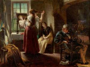 The Origin of the Combing Machine by Alfred Elmore (1815-1881). With this one it’s simple enough: it just offered me a good lead for my research. 🙂 More about the combing machine here. I know of two more variants of this painting, one currently exhibited at Tate, an early study for Invention of the Combing Machine (ca. 1862), and The Invention of the Combing Machine (1862), exhibited at Cartwright Hall Art Gallery.
