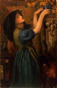 Marigolds or The Bower Maiden or Fleur-de-Marie (1874) by Dante Gabriel Rossetti (1828-1882). My love for the Pre-Raphaelites and D.G. Rossetti is a secret to no one and stems from too many reasons to be listed here. As to this painting, according to the Rossetti Archive: